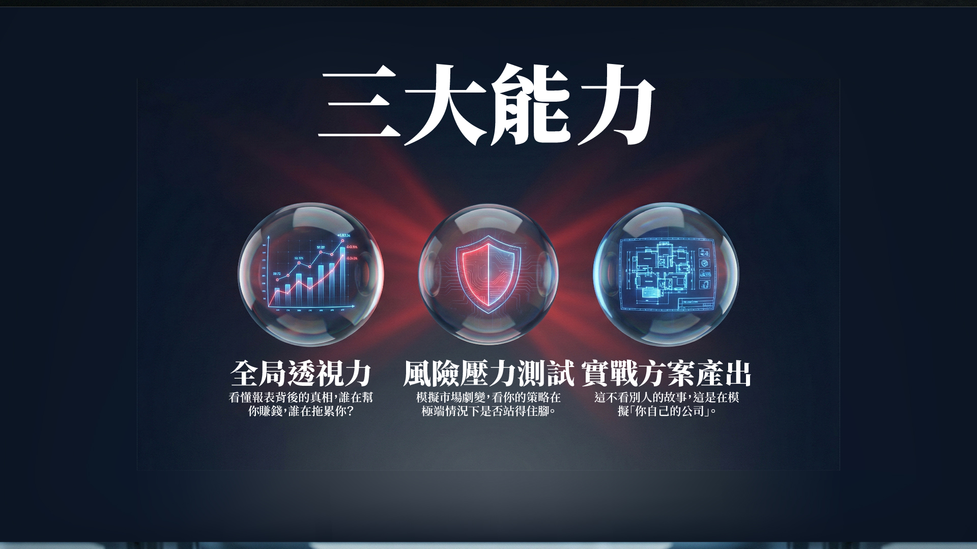 1. 盲區偵測:透過模擬,面對被報表掩蓋的危機。